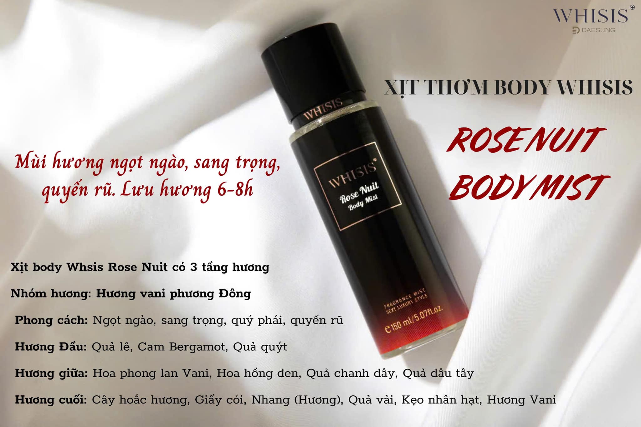 2. Xịt Thơm Toàn Thân Hương Hoa Hồng - Whisis Rose Nuit Body Mist 150ml