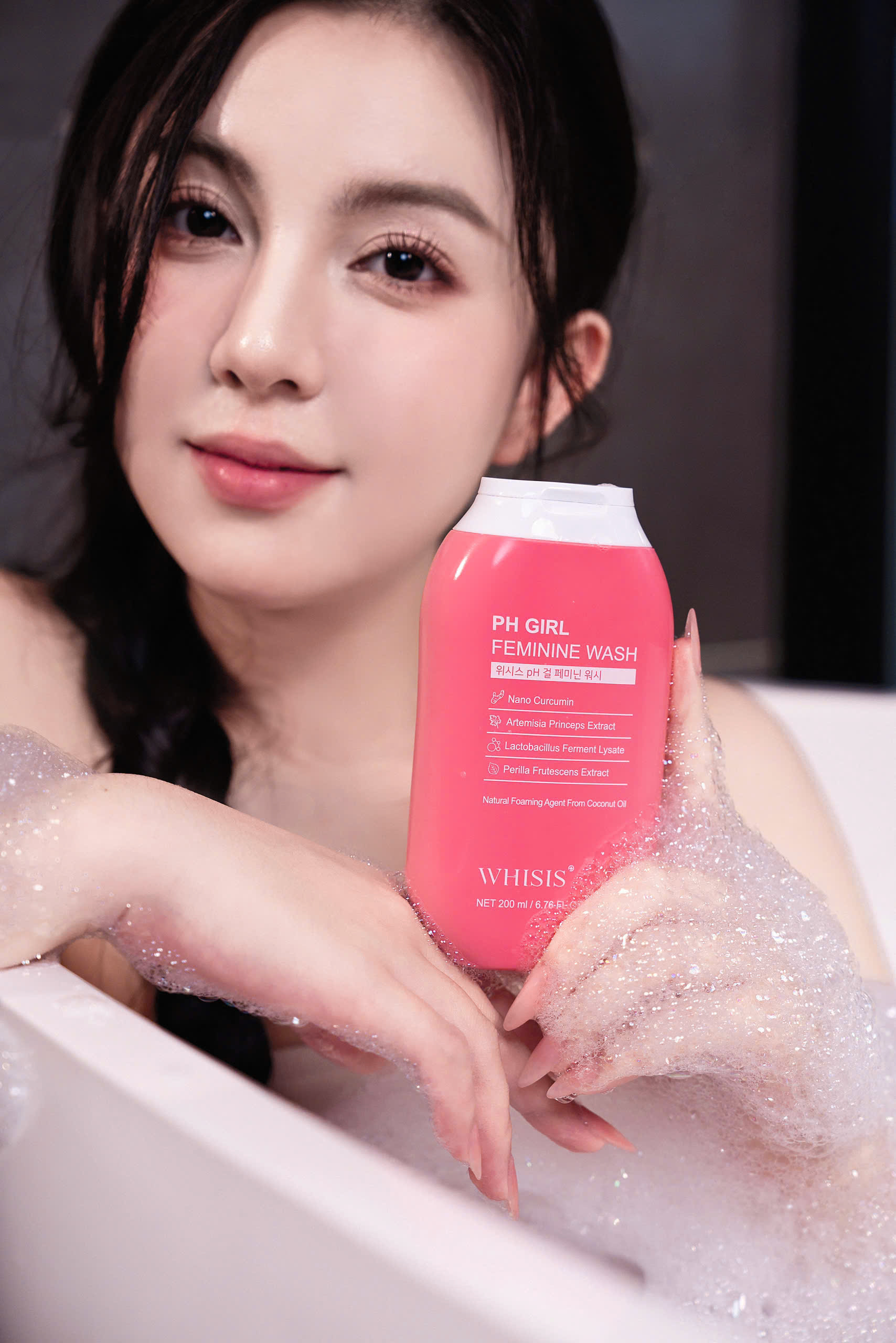 ➖ Đổ 1 ít ddvs ra tay, tạo bọt rồi thoa đều lên khu vực cô bé , massage 10-20s