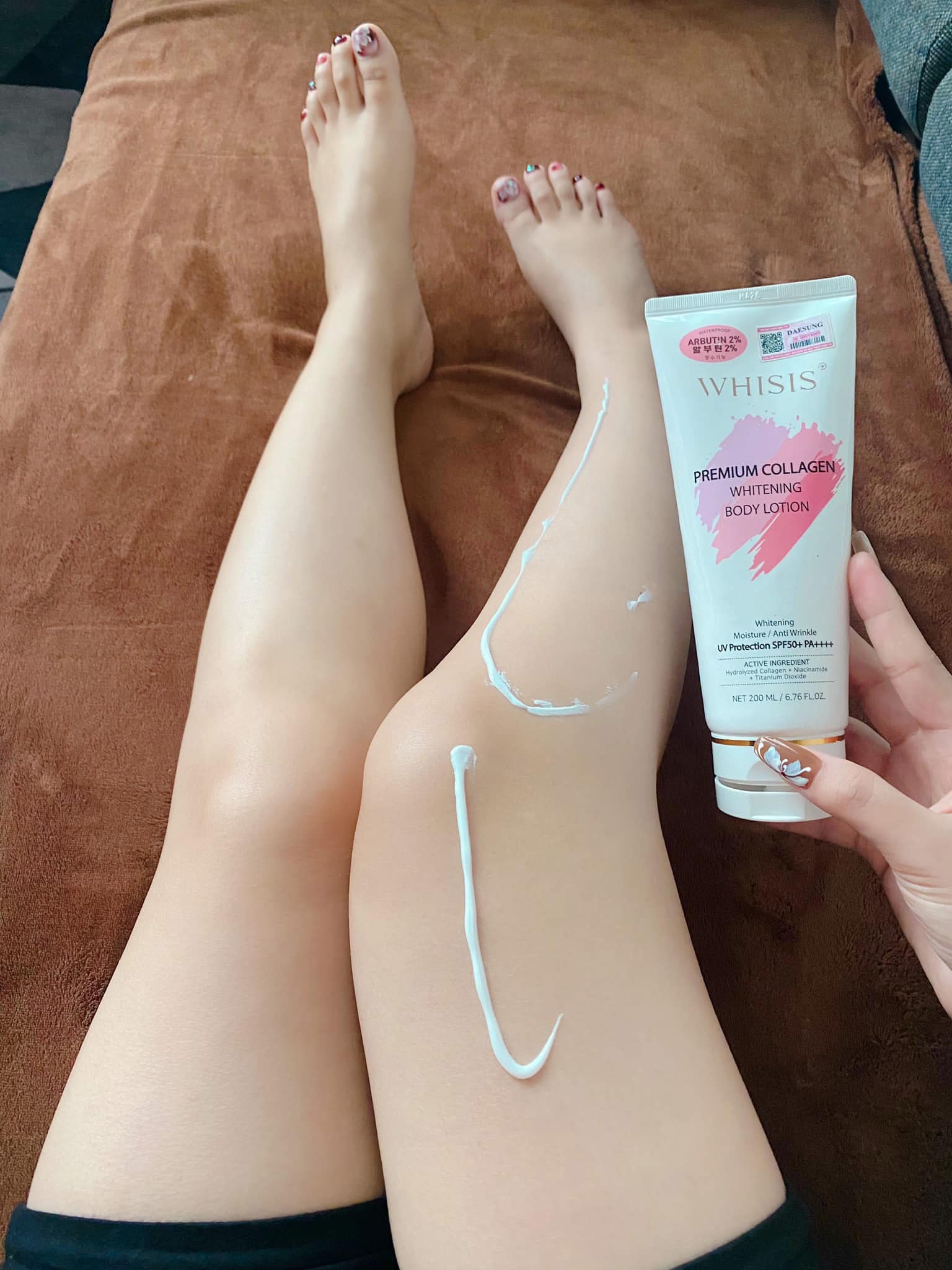 🔹 BƯỚC 3: Dưỡng trắng ban ngày với WHISIS Collagen Whitening Body Lotion (SPF50+ PA++++)